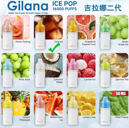 正品吉拉娜二代爆珠Gilana Ice Pop 16000口冰爽系列液晶屏电量显示可视化油仓一次性电子烟-多口味可选
